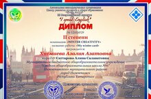 Поздравляем ученицу 9Б класса Хисмиеву Азалию, получившую диплом II степени III Всероссийского конкурса "I speak English" (учитель Саттарова Алина Салаватовна).