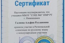 Обучающаяся 7А класса Галиева Альфия приняла участие в Региональной олимпиаде по русскому языку с международным участием. Олимпиаду провел Набережночелнинский государственный педагогический университет (учитель русского языка и литературы Сергеева Ирина Юрьевна).