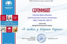 Учитель русского языка и литературы Сергеева Ирина Юрьевна стала участником Межрегиональной акции "В гостях у дедушки Корнея".