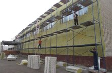Активно идёт ремонт фасада школы №6. Здание школы утепляют и обшивают керамогранитной плиткой. Работы ведутся ООО "Радаль".