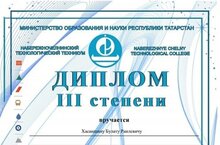 Поздравляем ученика 5А класса Хасаншина Булата, занявшего III место в Международной школьной научно-практической конференции "Школьная наука - инновационный потенциал будущего" (учитель Сабирова Ралена Даимовна).
