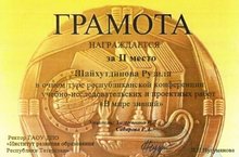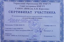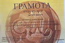 Поздравляем победителя (диплом третьей степени) Республиканской конференции учебно-исследовательских и проектных работ "В мире знаний" Иманкулову Алию (учитель Миннегалиева Раиля Хамитовна). Сертификаты участников получили Воеводина Регина (учитель Сахабиева Аниса Рафкатовна) и Шамсиева Алсу (учителя Зиганшина Венера Гависовна, Шайдуллина Танзиля Рахимулловна).