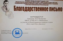 Поздравляем учителя русского языка и литературы школы №6 Гимадееву Лялю Мунировну - участника первого Республиканского конкурса чтецов "Поэт-герой Муса Джалиль".