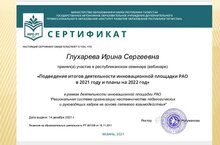 Директор школы 6 Глухарева Ирина Сергеевна приняла участие в Республиканском вебинаре "Подведение итогов деятельности инновационной площадки РАО в 2021 году и планы на 2022 г." Организатор семинара ИРО РТ.