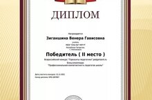 - учитля родного языка Сабирову Ралену Даимовна, занявшую первое место в Международном конкурсе "Профессиональное мастерство"