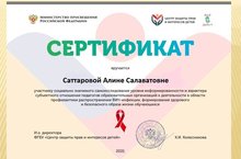 Учитель английского языка, классный руководитель 7"б" класса Саттарова Алина Салаватовна приняла участие в социально значимом исследовании информированности педагогов в области распространение ВиЧ - инфекции, формирование здорового и безопасного образа жизни обучающихся.