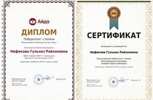 Поздравляем учителя музыки Нафикову Гульназ Райхановну, занявшую первое место в Международной олимпиаде центра "Айда" в олимпиаде "Требования ФГОС к уроку в школе"..