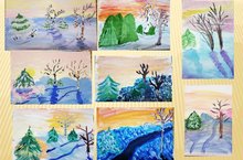 Зимние пейзажи в рисунках пятиклассников 25.12.2020 Самые нежная палитра оттенков в зимних пейзажах учащихся пятых классов. Дети учились писать небо и снег, пушистые ёлочки и покрытые снегом деревья. Настроение - новогоднее! ( учитель изобразительного искусства Глухарева И.С.)