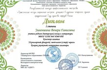 Дипломом I степени Республиканского конкурса профессионального мастерства "Практические методы сохранения интереса учащихся в изучении татарского языка", приуроченного Году единства народов России, награждена учитель родного языка и литературы Зиганшина Венера Гависовна.