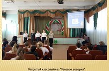 В 6а классе прошел открытый классный час по теме "Телефон доверия". Учащиеся сняли видеоролик, направленный на популяризацию детского телефона доверия, а также рассказали о том, в каких случаях можно позвонить по телефону доверия (классный руководитель Зиганшина Венера Гависовна)