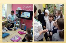 Обучающиеся 3"В" класса посетили библиотечный урок в детской библиотеке "Апуш" ( кл.рук. Макарова Нелля Михайловна)