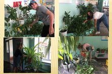 Отдыхающие лагеря труда и отдыха с удовольствием заботятся о цветах в родной школе