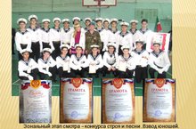 Взвод юношей нашей школы приняли участие в смотре-конкурсе строя и песни.Итоги смотра-конкурса строя и песни : диплом первой степени в командном зачете по подтягиванию; диплом второй степени в личном зачете по подтягиванию ( Исаев Стас); диплом второй степени в номинации "Компьютерное тестирование" (Зиганшин Дмитрий); диплом в номинации "За волю к победе".