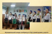 По итогам конкурса 19 апреля прошло награждение нашего отряда ЮИД, занявшего 3место в муниципальном конкурсе агибригад "Давай дружить, дорога!».