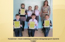 Поздравляем победителей и участников Казанской очной олимпиады в рамках международного проекта “Сомик”: 4 призера и победитель –Кострулина Доминика (учитель Фаттахова В.А.)