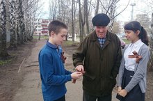 23 апреля - Георгиевская ленточка. Учащиеся нашей школы и учителя прикрепили на груди Георгиевскую ленточку, а также раздавали прохожим на улице, как символ военной славы, демонстрируя свое уважение к воинам, сражавшимся за Отечество.