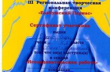 Поздравляем Дуенко Софью, за участие в III Региональной творческой конференции «Елабужский Парнас». Софья представила на конференцию свою исследовательскую работу по разделу биология.(Учитель Набиева М.Р.)