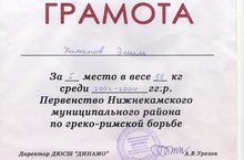 Поздравляем Хасанова Эмиля, занявшего I место в весе 55кг.среди мальчиков 2002-2004 г.р. в Первенстве Нижнекамского муниципального района по греко-римской борьбе.