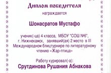 II место - Шоносратов Мустафо - учащийся 4 "А" кл. ( Срутдинова Р.А.);