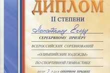 Поздравляем Лопатина Егора - серебряного призера Всероссийских соревнований "Олимпийский надежды" по спортивной гимнастике.