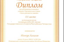 Поздравляем Халилова Ильнура, занявшего III место в Республиканском конкурсе эссе в рамках Парламентского урока - 2014г.