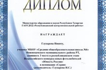 От нашей школы на конкурс было представлено 7 работ. Дипломом III степени награжден учащийся 2 "А" класса Глухарев Никита за серию фоторабот.