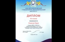 Поздравляем Новикову Марию, учащуюся 10 "А" класса занявшую III место в Муниципальном конкурсе рисунков "Мир глазами молодежи", дипломом также отмечена Глухарева И.С., учитель ИЗО, подготовившая победителя.