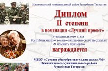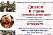Во исполнеии приказа УО №179 от 12.04.2016г. в сответсвии с положением в лицее №14 был проведен муниципальный этап Респубюликаснкого военно-паториотического фестиваля “Я помнить призываю”, посвященнный 71 –й годовщине Победы в ВОВ 1941-1945гг. По итогам Муниципальный военно - патриотического фестиваля «Я помнить призываю» (приказ УО №256 от 19.05.16) команда обучающиеся под руководством Глухаревой И.С., Хабировой А.М., Юнусова М.Р. заняла II место в номинации “ Луший проект”.