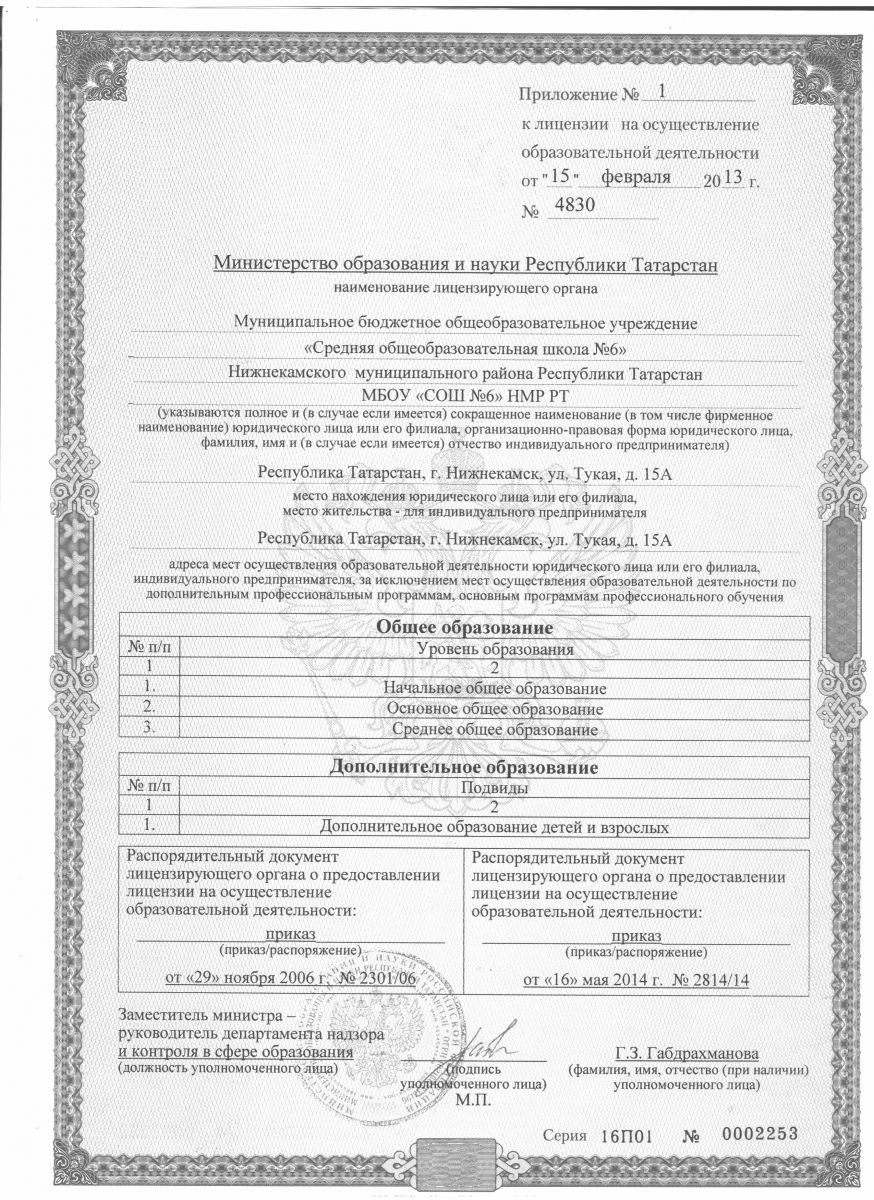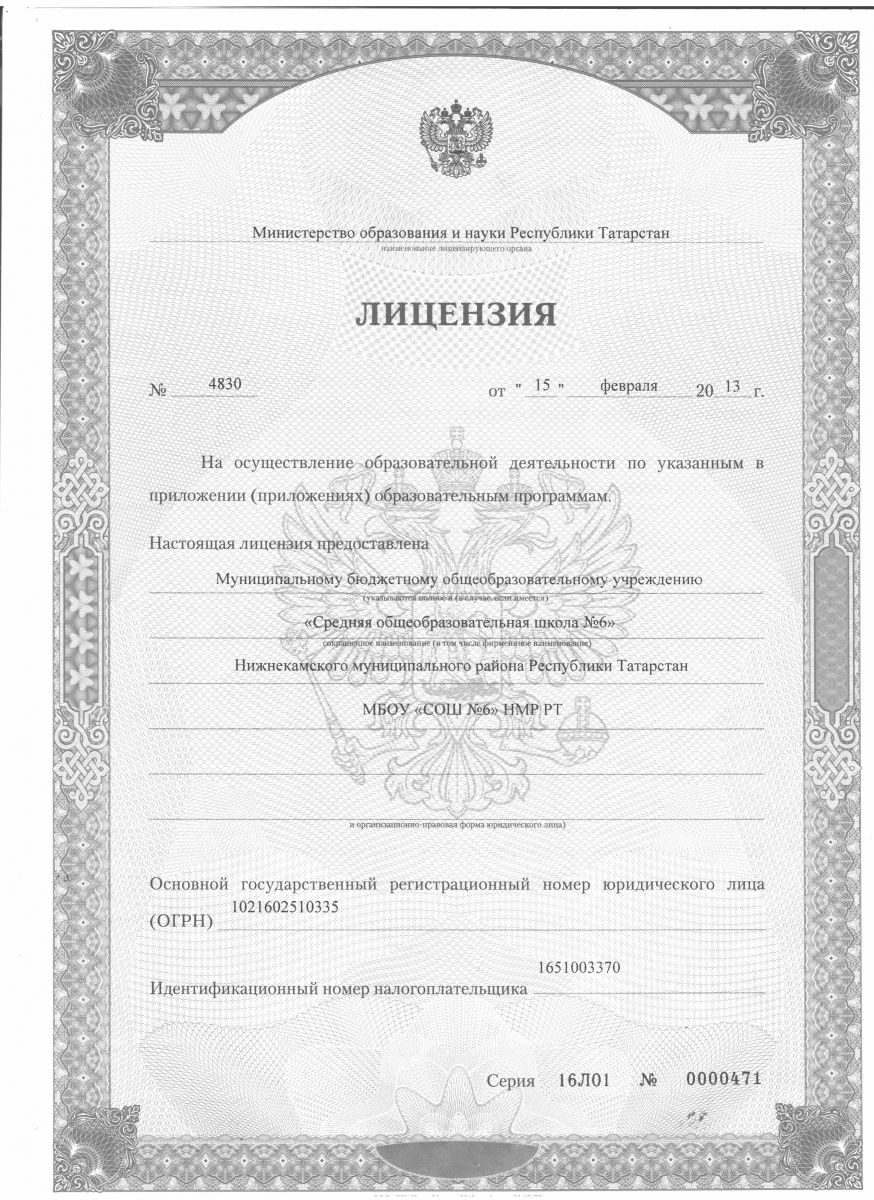 Муниципальное бюджетное общеобразовательное учреждение «Средняя общеобразовательная школа №6» Нижнекамского муниципального района Республики Татарстан