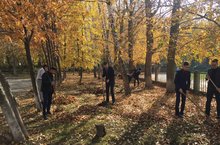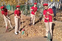 Юнармейцы вышли на уборку территории. Цель: благоустроить территорию школы, очистить от листвы, веток, мусора.