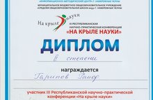 21 декабря в г. Наб-Челны состоялась Республиканская научно-практическая конференция школьников «На крыле науке» Раиф Гарипов стал обладателем диплома 2 степени в секции « математика и информатика» Молодец!