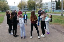 Учащиеся 10 а класса проводят игры на свежем воздухе для учеников 4 а класса, ведь вместе - это здорово!