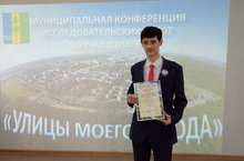 12 апреля в МБУ ДО СДЮТиЭ прошла муниципальная конференция «Улицы, носящие имена известных личностей» в рамках проекта «Улицы моего города». Ученик 10 класса Ковязин Илья выступил по теме «Улица Бызова» и был награжден дипломом II степени. Молодец, Илья!