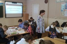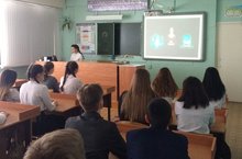 В целях профориентации в 8 а классе прошел классный час на тему «Кем я хочу стать?» . Перед ребятами выступили сотрудники библиотеки семейного чтения с обзором книг о профессиях нашего города .Также ребята проверили свои знания о профессиях в викторине, проведенной классным руководителем.