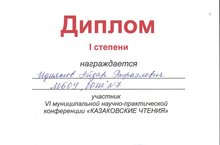 Идиятов Айдар стал обладателем диплома I степени в секции "Искусство и война" (руководитель Сидорова О.Н), где представил свою работу "Вклад физической культуры в Победу в Великой Отечественной войне"