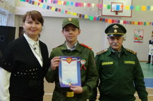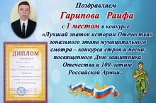 В рамках месячника гражданской - патриотической работы командир отряда юнармии Гарипов Раиф занял 1 место в компьютерном тестировании на знание истории Отечества, в зональном этапе муниципального конкурса посвященного Дню защитника Отечества и 100 - летию Российской Армии.