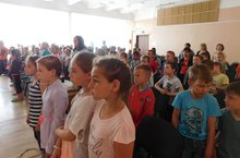 26 июня ребята из пришкольного лагеря «Непоседы» вместе с артистами театра «Птица счастья» совершили путешествие в страну Светофорию. Накануне завершения лагерной смены детям напомнили о правилах дорожного движения, о правилах юных велосипедистов.
