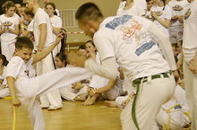 Целовальников Артем, ученик 1 Б класса, занимается капоэйро только год, но уже показывает успехи. Поэтому он получил желто-серый пояс, побывав в Самарском клубе ABADA CAPOEIRA.