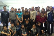 7 а класс закончив 2 четверть, решили вместе и отдохнуть. Классный руководитель и ребята играли в боулинге.