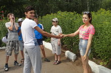 С самого утра ребята захотели размяться на "Солнечной поляне". Было весело играть в волейбол и заниматься на тренажерах.