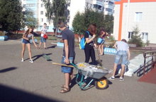 Учащиеся пришкольного лагеря решили присоединиться к этой акции. Они учащиеся 7А и7В класса произвели убоку на территории родной школы.
