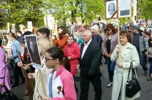 Учащиеся 4 б класса Ишметов Тимур и Безбокова Настя вместе с учащимися 7-ой школы прошли по улицам с портретами своих прадедушек и прабабушек, которые приблизили радостный День Победы.