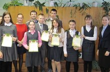 лауреаты - Иванов Евгений и Синявцева Виктория (1а), Никитина Полина (2а), Имамиева Динара (2б), Шагина Лиля (2в).