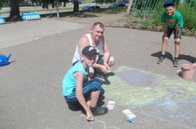 В МБОУ »СОШ№7» прошел конкурс рисунков на асфальте «Лучший флаг семьи» , с участием пап с детьми.