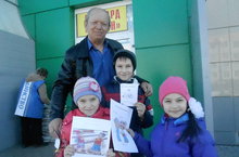 В целях пропаганды родного языка ученики 2Б класса сочинили листовки и распространяли их около магазина “Сезам” и “Пятёрочка” по линии акции “Мин татарча сөйләшәм!”