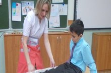 В 3 А классе прошёл необычный урок окружающего мира. К ребятам в гости пришел профессиональный медицинский работник. Лилия Накиповна, мама одной из учениц класса, рассказала ребятам о детских шалостях, которые приводят к травмам. Он а познакомила детей с видами травм. Ребята на практике учились оказывать первую доврачебную помощь пострадавшему. Учились обрабатывать раны, делать перевязки и накладывать шины. К концу урока дети пришли к выводу, что лучше предотвратить травмы, чем их лечить .