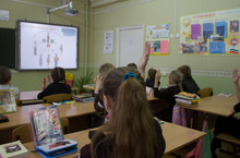 На уроке присутствовали элементы нового года, олимпийских игр в Сочи. Урок проходил в форме праздника-игры, где ребята активно проявляли свои знания, играли, пели, рассказывали стихи и украшали новогоднюю елочку. Цели и задачи урока были достигнуты за счет использования различных форм деятельности. В заключительной части урока команды получили новогодние звездочки. И ребята, и гости урока остались довольны.