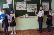 С таким призывом учащиеся 3В класса из за отряда ЮИД "Зебра" под руководством Белоусовой Л. Г. провели профилактическую беседу по изучения ПДД среди учащихся 1 классов.