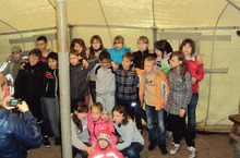 На осенних каникулах 7А класс посетил парашютную вышку города. Старший инструктор парашютной подготовки наградил некоторых ребят значками "За смелость".