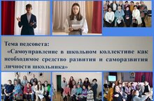 29 декабря в школе прошел педагогический совет по воспитательной работе «Самоуправление в школьном коллективе как необходимое средство развития и саморазвития личности школьника». Целью данного педсовета являлось обсуждение условий, необходимых для формирования конкурентоспособной личности, через развитие ученического самоуправления; обсуждение и решение актуальных проблем школьного самоуправления, обмен мнениями, изучение и распространение педагогического опыта; вовлечение участников педсовета в активную продуктивную деятельность, сотрудничество. В педсовете выступили обучающиеся 11А класса Миргасимов Руслан и Гаврилова Анастасия, победитель муниципального этапа регионального конкурса «Я - лидер» Коровина Милана, зам. директора по ВР Иванова С.Х. с докладом «Ученическое самоуправление в школе», педагог-организатор Касимова О.А. «Работа ученического самоуправления». После слово на тему «Из опыта работы органов самоуправления в классах», было предоставлено классным руководителям с каждой ступени образования. От 1-4 классов выступила Кондратьева Т.Г., классный руководитель 1Б класса; от 5-8 классов - Гараева Э.Р., классный руководитель 6а класса; от 9-11 классов - Бареева Л.Ф., классный руководитель 9А класса. Затем коллектив был разделен на 4 группы. Каждая группа выполнила задания, направленные на выявление лидера и сплочение участников. По итогам педсовета было составлено решение, которое одобрено коллективом.